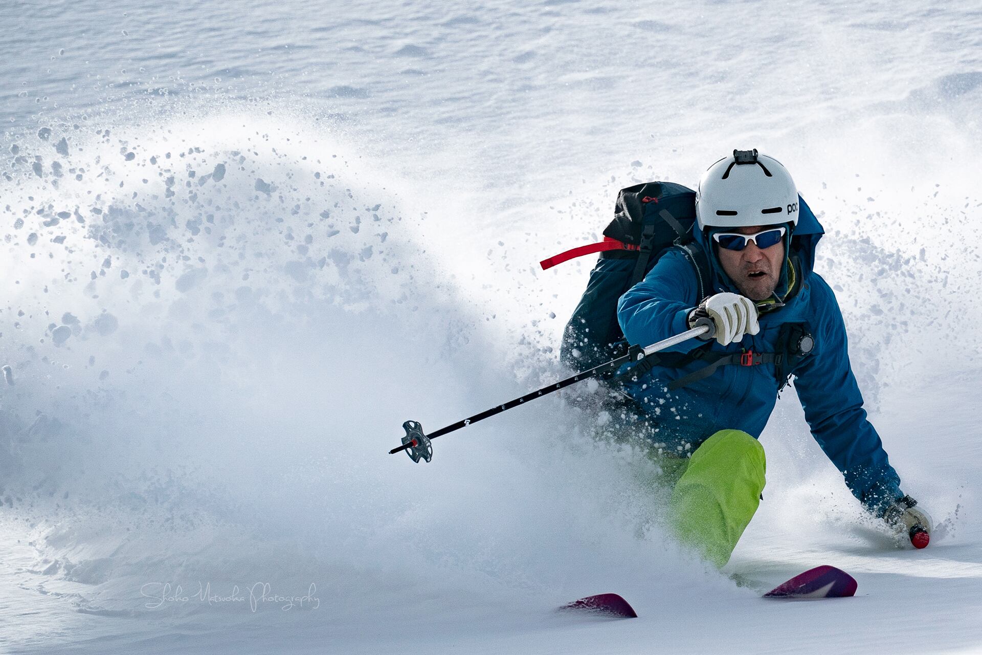 中部山岳スティープスキー100選、表紙のオリジナル作品。乙妻は雪がよく柔らかい光が差し、天然のスタジオのようだった。