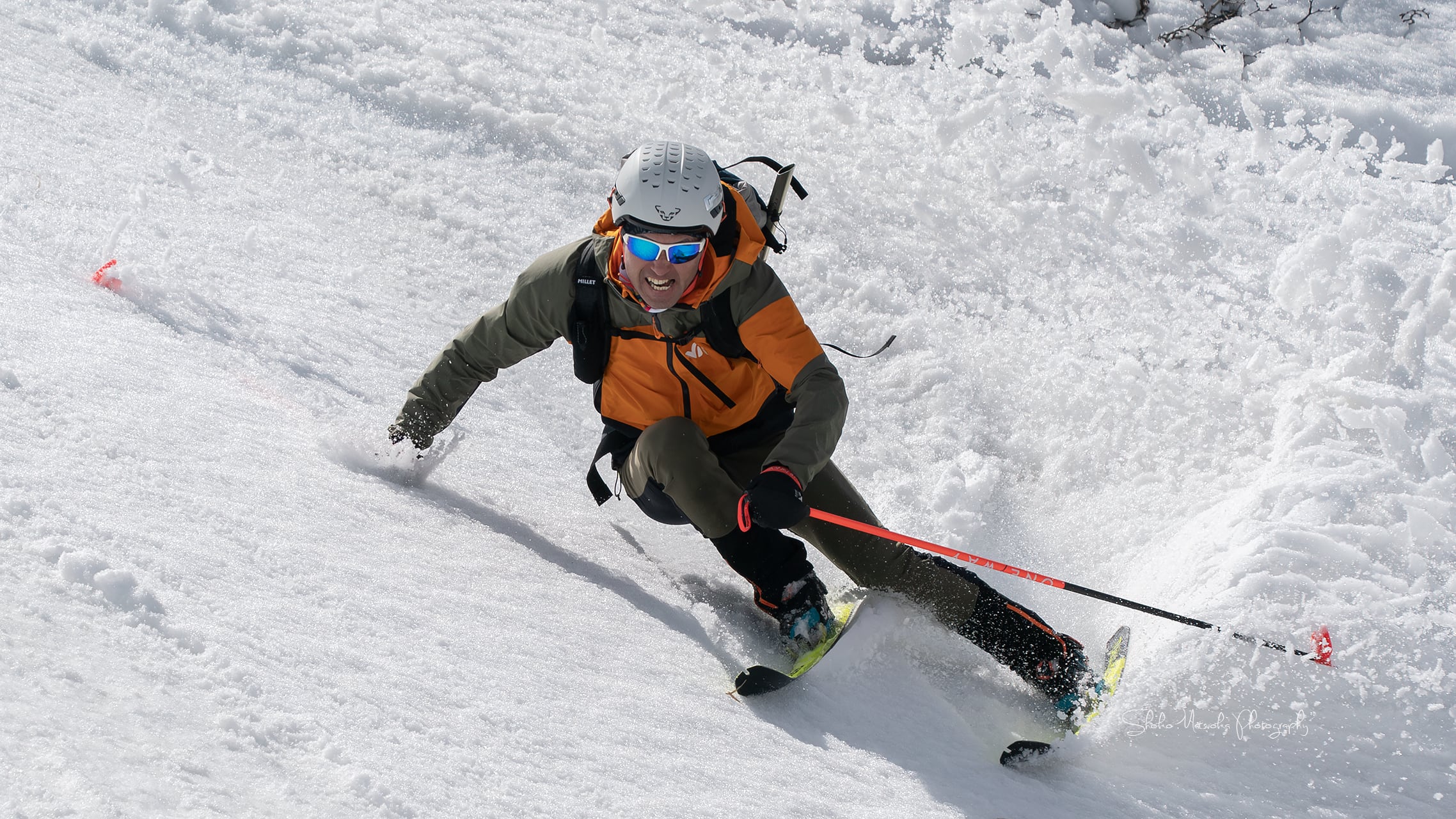 白馬の松澤幸靖さんと作品撮りした。競技・デモ・テレマーク・スキーモと何でもこなすミスタースキーヤー。